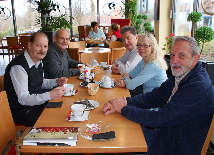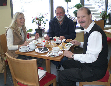 Unser Frühstücksstammtisch, allerdings in Minimalbesetzung. Links: ehem. Kollegin Jana Henrich Mitte: ehem. Kollege Rolf Thielemann Wie bereits schon erwähnt, finden wir uns hier jeden Mittwoch, morgens 9.00 Uhr, ein. Unten: Weitere Frühstücksrunden mit Berhard Möller und Uwe Metzroth, auch ehem. Kollegen. |