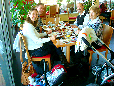 Es ist Sonntag, der 30. Jan.uar 2011 Das erste Frühstück mit unseren Nachbarn in diesem Jahr. Frau Weyerhäuser, Anette und wir haben beschlossen, jewils am letzten Sonntag im Monat ein Frühstück zu zelebrieren. Mal schauen, wie lange sich das durchhalten lässt. Natürlich finden auch Treffen mit anderen Nachbarn und auch anderen Personen statt, so z.B manchmal mit Günter, sonntags nach dem Friedhofsbesuch. |