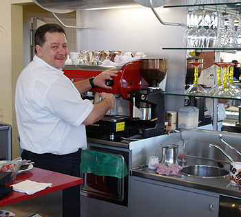 Hier ist der Hintereingang des 'La dolce Vita' und rechts, hinterm Tresen, ist Toni der Bistrowirt.